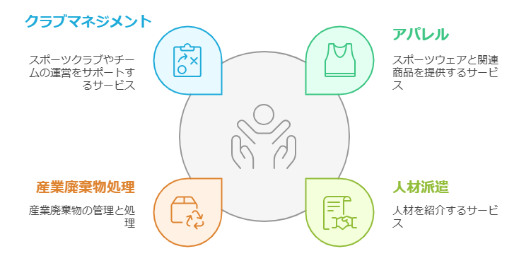 アスリート支援事業・飲食業・営業代行業・アパレル事業・人材派遣業・産業廃棄物処理業など、異なる業種にわたる多角的な事業を展開しています。これにより、さまざまな業界やニーズに柔軟に対応できる体制を整えており、どのようなご依頼にも迅速かつ的確にお応えします。お客様一人ひとりの要望に寄り添ったサービスを提供し、信頼されるパートナーとしての役割を果たしています。